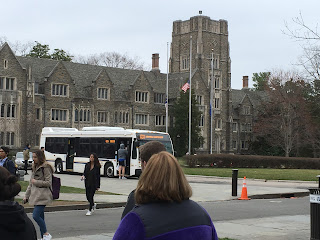 Student life wise, Liz told us that about 1/3 of students participate in Greek life, but she noted that pledging doesn’t start until winter of the first year, so new arrivals can focus on academics. This policy also times it to coincide with basketball season, which is a pretty big deal at Duke. I didn’t get any pictures (I was pressed for time), but my visit was smack in the middle of “tenting”, when students set up a 24-hour per day campsite for six weeks to make sure that they are at the front of the line for tickets against arch-rival UNC in their annual basketball game. The tent city is known as Krzyzewski-ville after legendary coach Mike Krzyzewski. This was held out as a particular example of school spirit, but it seems like Duke students are extremely proud of being Duke students, and not just for basketball.