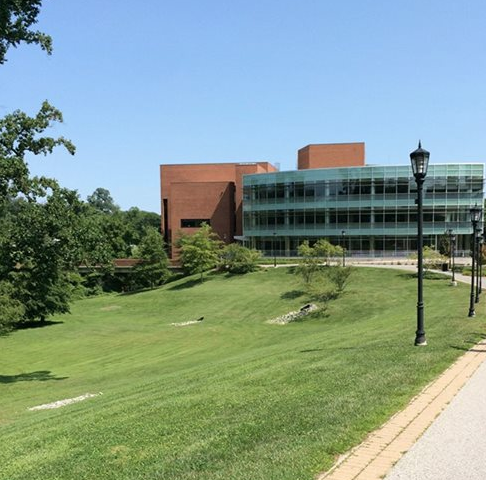 The campus is divided into academic and residential sections. The architecture is varied in both, but the academic section features lots of stone and steel, along with a beautiful Tudor-style building housing admissions, other administrative offices and several academic departments including history and philosophy. There is an expansive quad with benches, trees and flower plantings. I was told that students use this for recreation during the year (Frisbee, etc). The entire campus appears to be very well-lit and is very walkable; I was told that it is a 7-10 minute walk from end to end.
