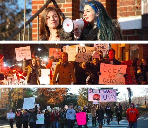 | Montage of images from demonstrations following Rolling Stone story. Marshall Bronfin |